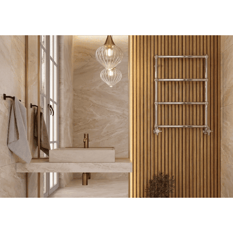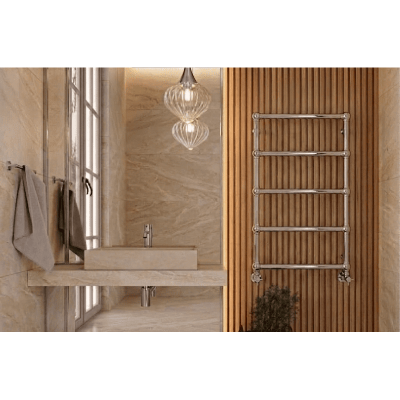 Radiateur électrique vertical au design rétro élégant, idéal pour salle de bain ou pièce de vie. Sa structure décorative assure une diffusion homogène de la chaleur tout en apportant une touche esthétique haut de gamme.