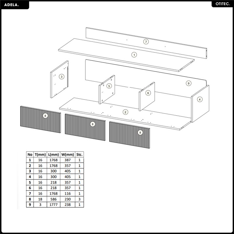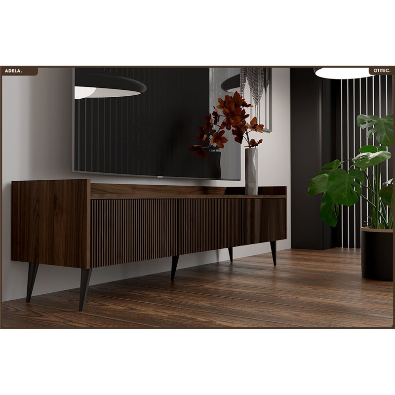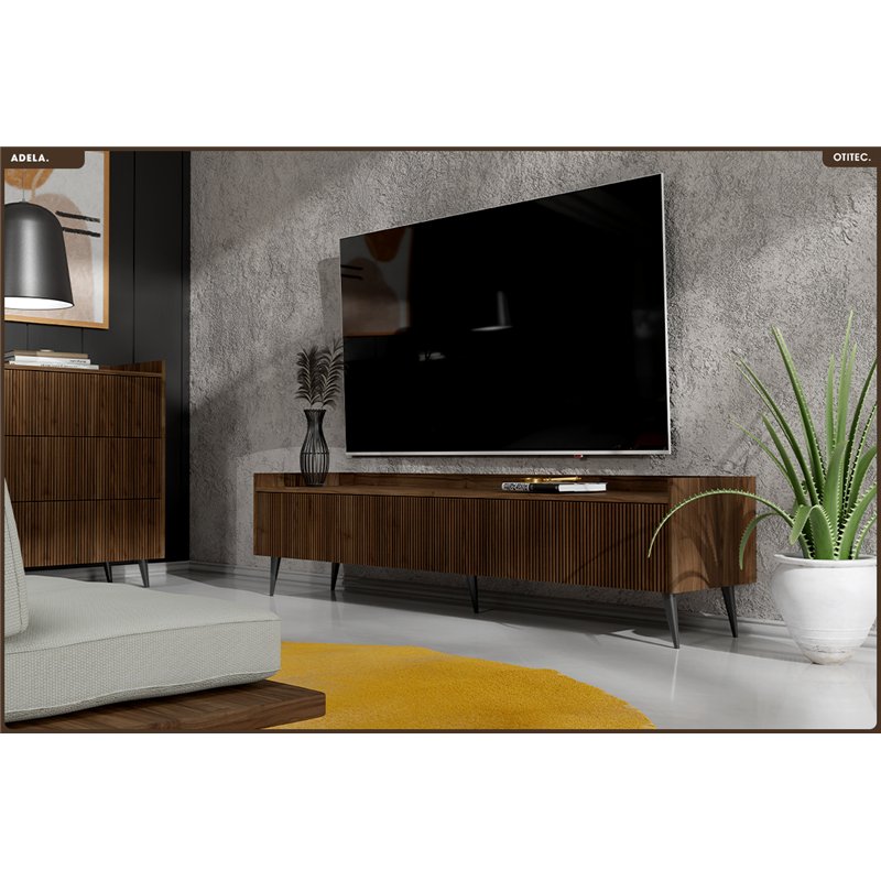 • Esthétique affirmée : Façades rainurées verticales, teinte chaleureuse du noyer, volumes équilibrés. ADELA impose une présence élégante et originale, sans alourdir l’espace.