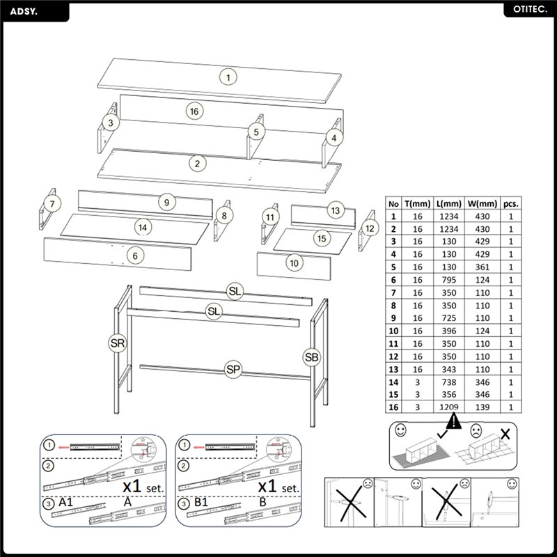 • 1x - Console - L.123 x H.83 x P.43 - ADSY