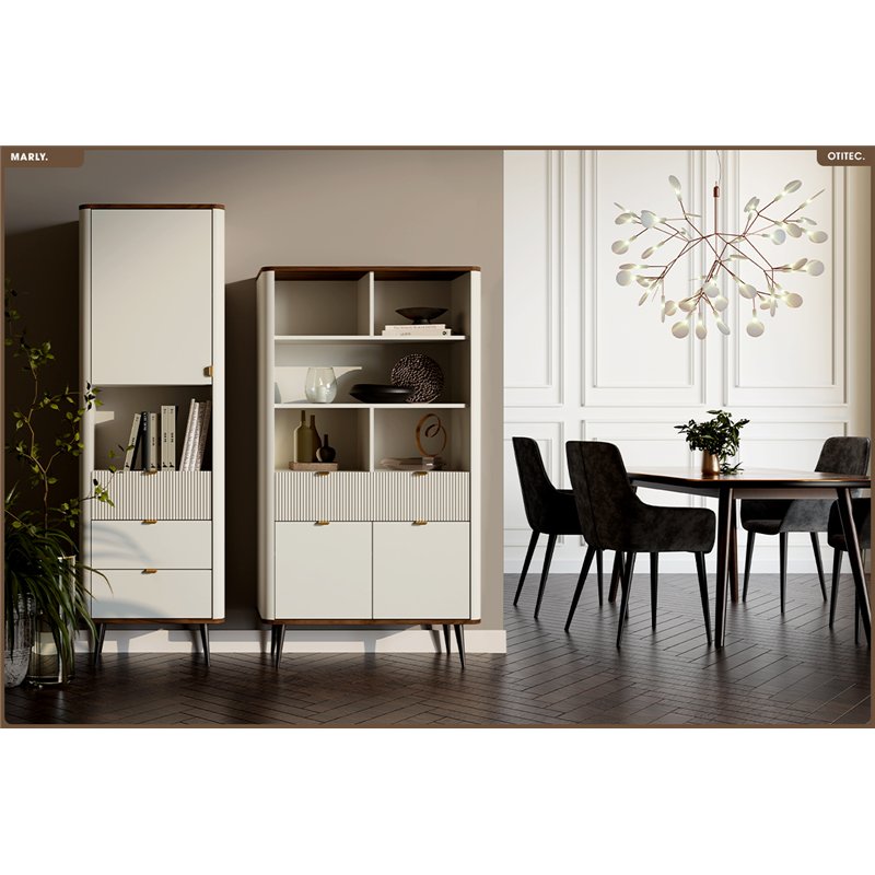 Élégance naturelle : Façades finement rainurées, finitions mates et contrastes de matières. MARLY impose une présence sobre et chaleureuse, idéale pour structurer votre intérieur avec subtilité.