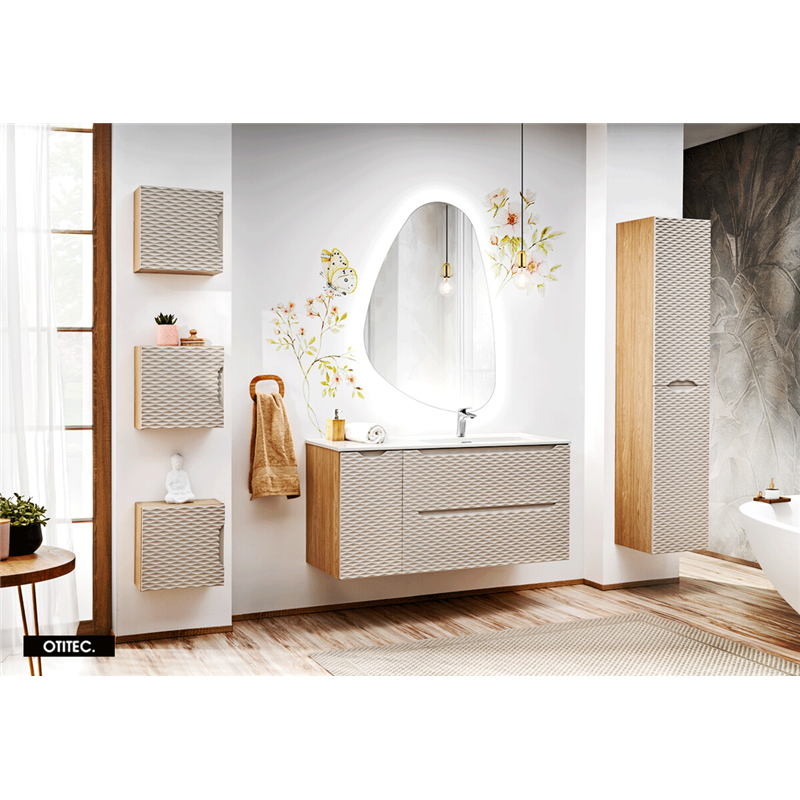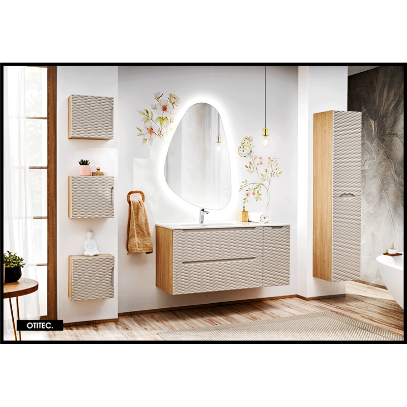 Design moderne et élégant : La finition raffinée, alliée à un design moderne, crée une ambiance douce et contemporaine dans votre salle de bain. Le meuble s’intègre parfaitement dans tout type de décoration tout en apportant une touche d’élégance.