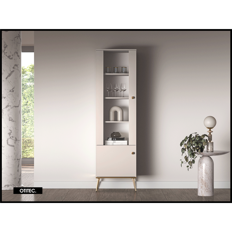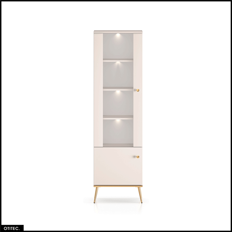 • Esthétique raffinée : Design moderne avec des détails en Cachemire Mat et des poignées métalliques dorées.