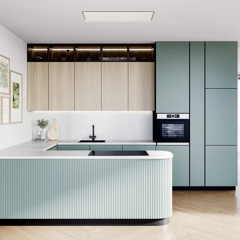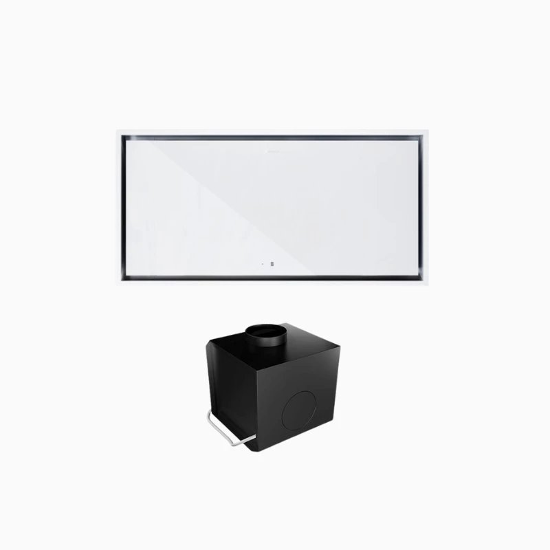 La série Novelti 100.1 a été pensée pour ceux qui recherchent une efficacité redoutable sans compromettre l'esthétique de leur intérieur. Sa forme ultra-plate permet une installation affleurante au plafond, transformant la hotte en un élément architectural sobre et luxueux. Disponible en verre trempé noir profond ou blanc pur, elle s'adapte avec élégance à tous les styles de cuisines, particulièrement les espaces ouverts avec îlot central.