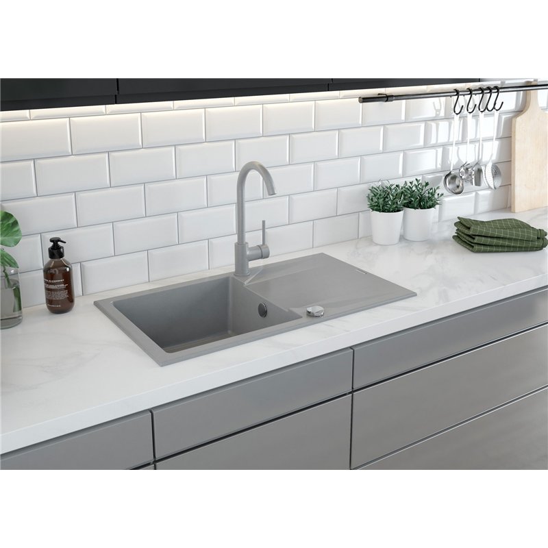 Disponible en finitions graphite, beige, sable, albâtre, graphite métallisé, noir, gris métallisé et anthracite métallisé, l’évier en granit EVORA offre une solution pratique avec égouttoir intégré.