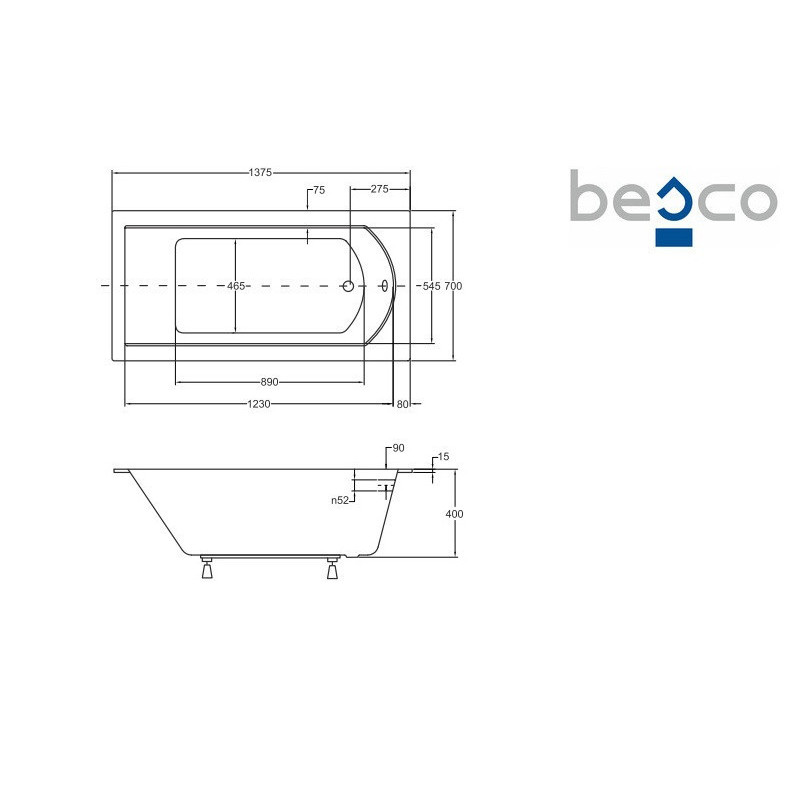 La baignoire SHEA SLIM est proposée en dimension 140 cm et est conçue pour une installation à encastrer, sans tablier.