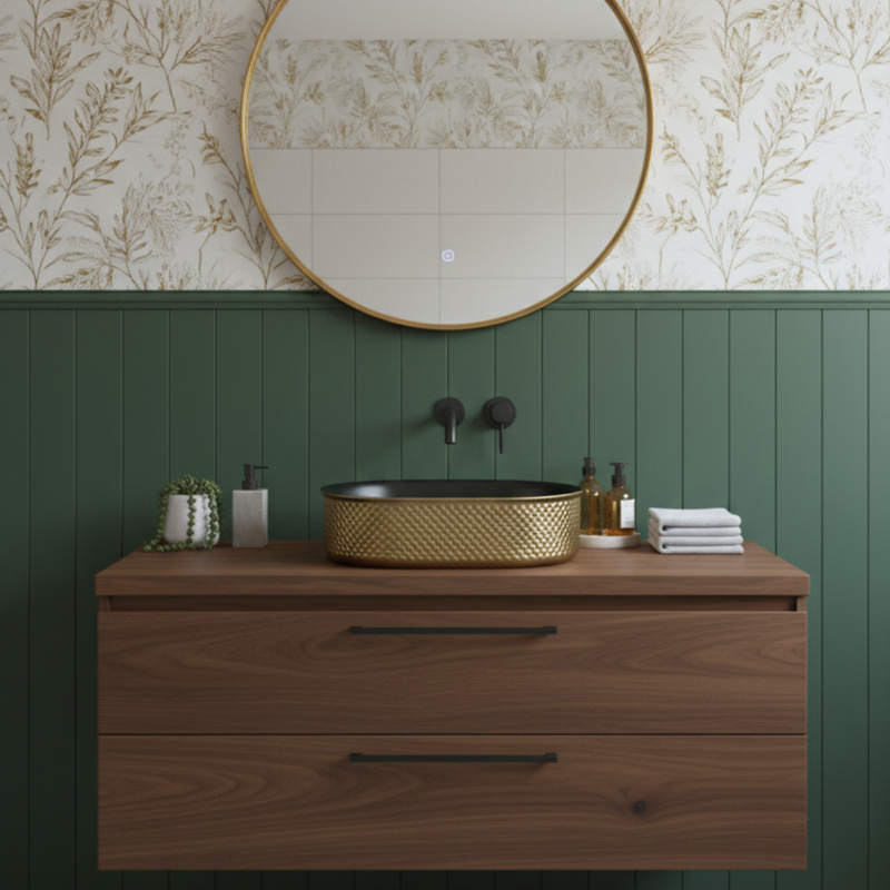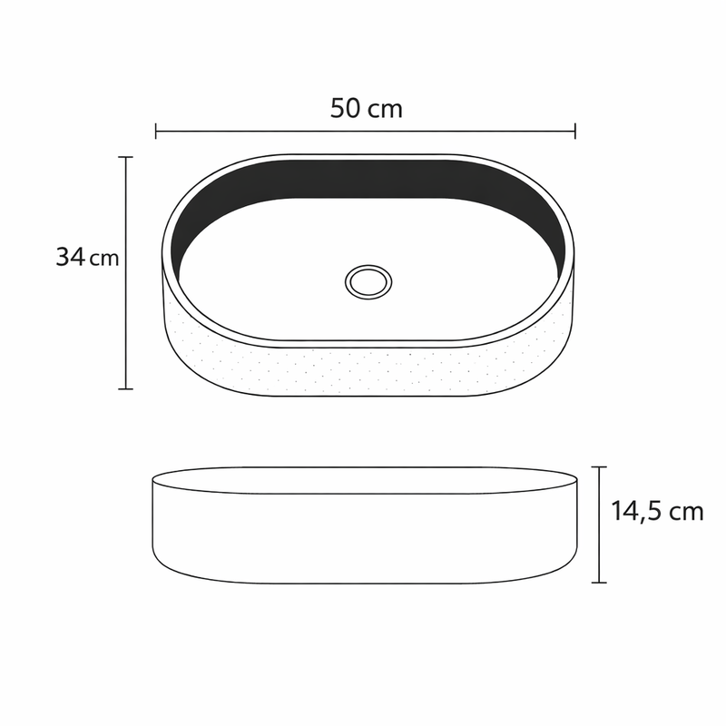 La vasque à poser GOLDI séduit par sa forme ovale type capsule et son design audacieux. Sa finition noir mat et son exterieur audacieux doré piqué, apporte une touche luxueuse et originale pour une salle de bain au design affirmé.
