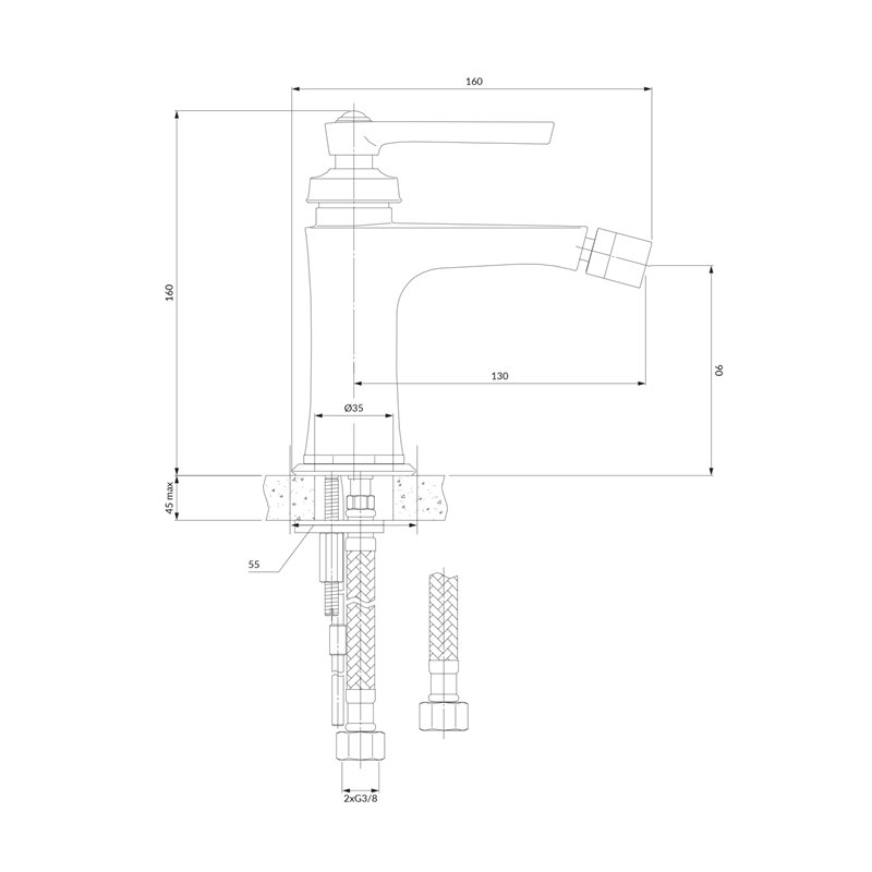 Mélangeur de bidet avec contrôle précis, jet doux sans éclaboussures et économie d’eau. Design élégant et durable.
