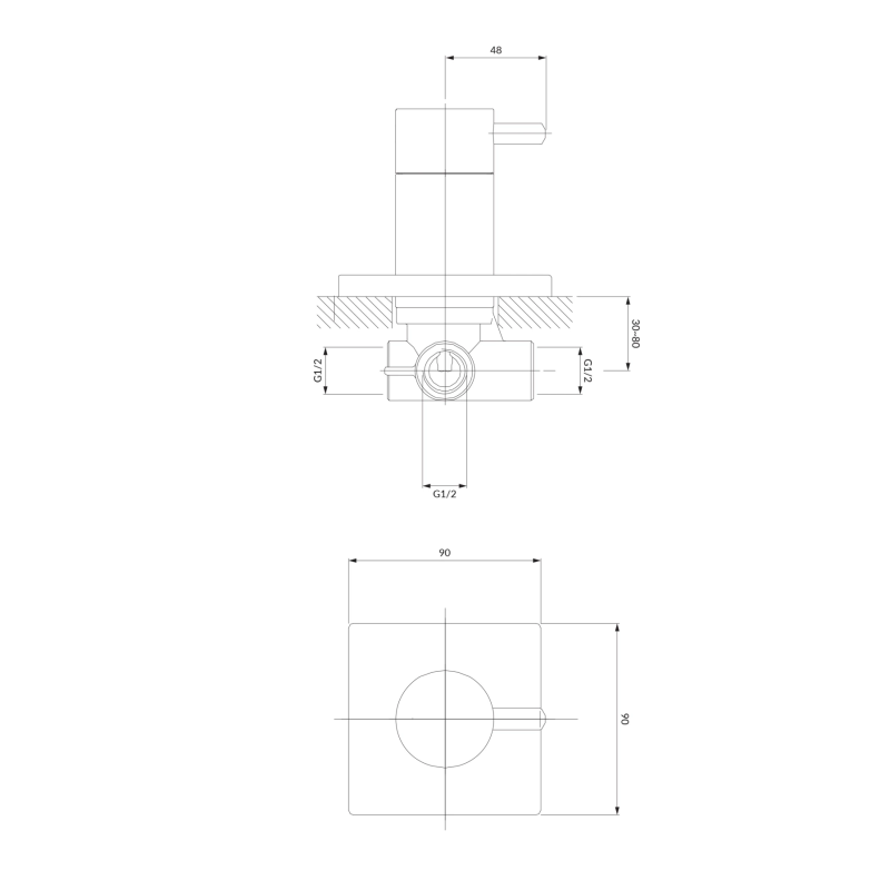 L’inverseur 3 voies à encastrer Collection Y en finition chrome poli est conçu pour une installation murale discrète et épurée.