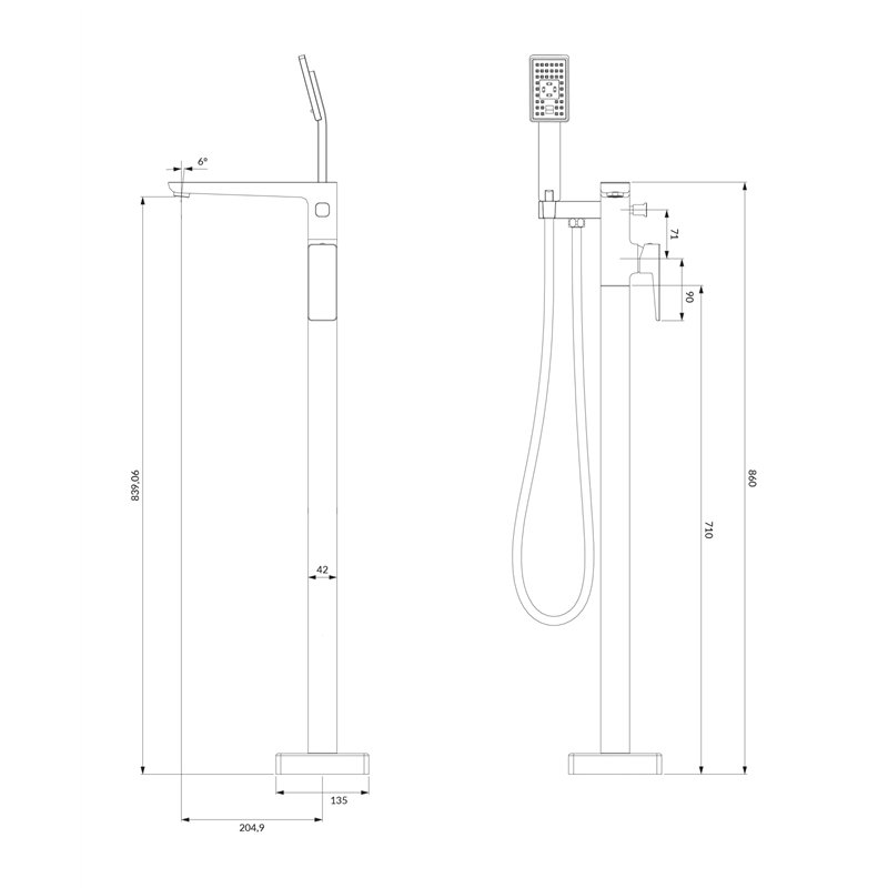 Mélangeur de baignoire autonome à poser au sol, idéal pour baignoire îlot. Douchette 3 fonctions, grande hauteur et design minimaliste.