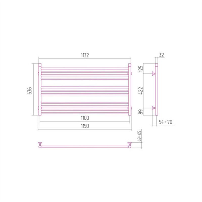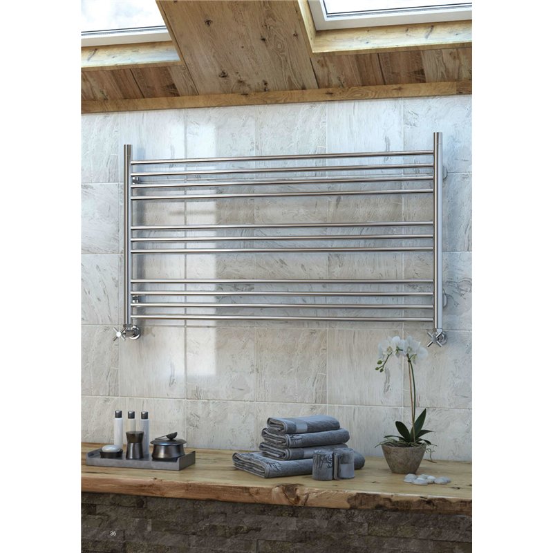 Radiateur sèche-serviettes horizontal hydraulique, idéal pour les espaces sous pente. Grande capacité de séchage avec possibilité d’ajouter des crochets.