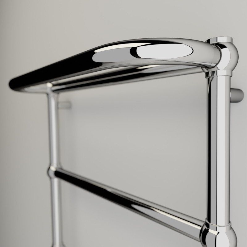 Radiateur électrique au design original avec éléments décoratifs et barre intégrée, idéal pour salle de bain. Il assure une montée en température rapide tout en maintenant vos serviettes sèches et chaudes.