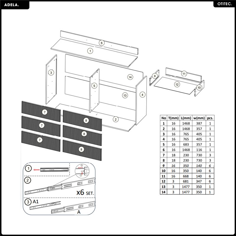 Matériaux durables : Panneaux mélaminés de qualité, chants ABS, glissières métalliques à billes. Une conception robuste, simple à entretenir.