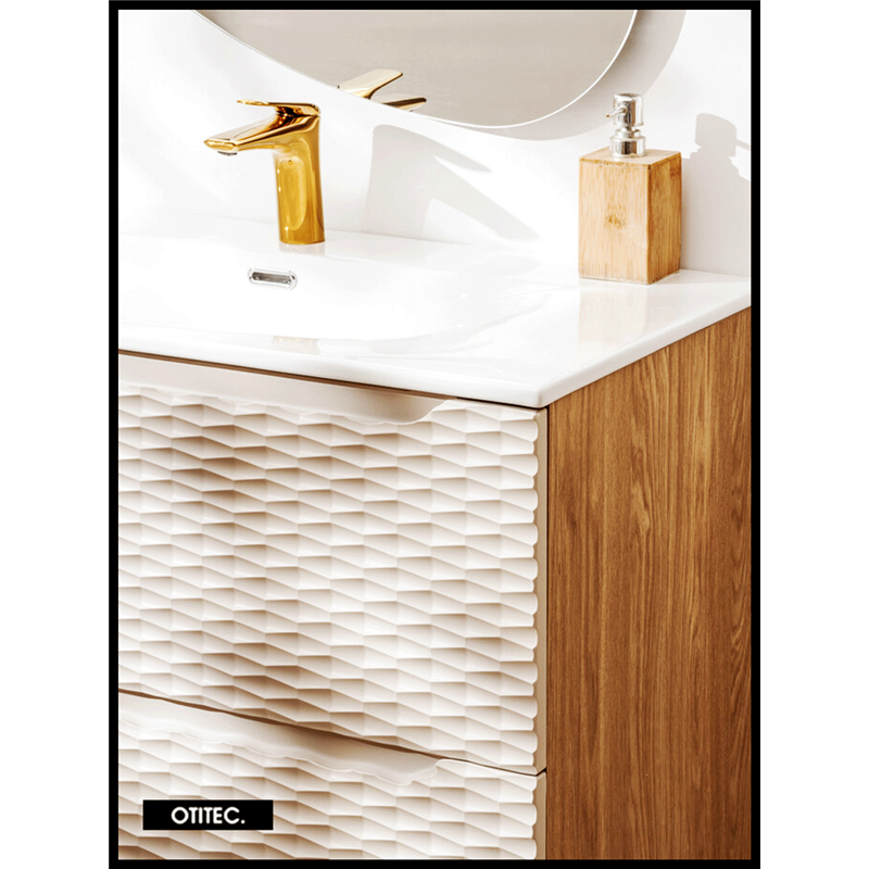Design moderne et élégant : La finition raffinée, alliée à un design moderne, crée une ambiance douce et contemporaine dans votre salle de bain. Le meuble s’intègre parfaitement dans tout type de décoration tout en apportant une touche d’élégance.