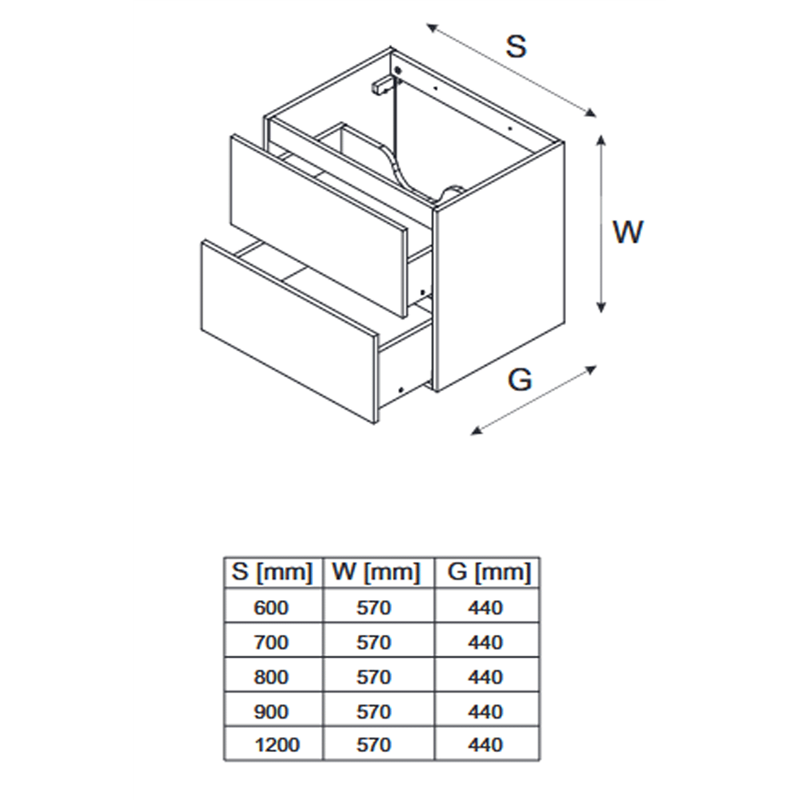 • x1 - Meuble sous vasque de 70 cm - 2 tiroirs - SEA