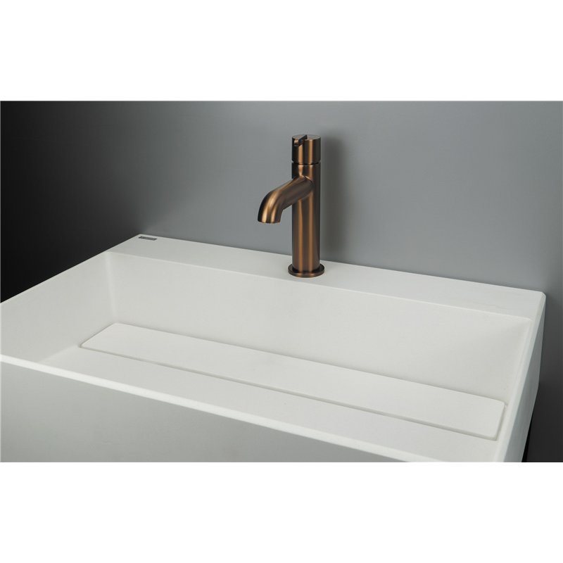 Le mélangeur de lavabo haut (32 cm) est conçu pour les vasques à poser de grande hauteur. Ses proportions généreuses, avec une hauteur sous bec de 24 cm et une portée de 17 cm, offrent un confort d’utilisation optimal et une grande liberté de mouvement.