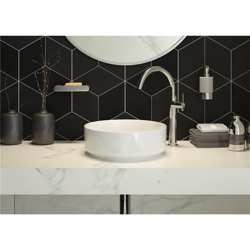 Le mélangeur de lavabo haut (32 cm) est conçu pour les vasques à poser de grande hauteur. Ses proportions généreuses, avec une hauteur sous bec de 24 cm et une portée de 17 cm, offrent un confort d’utilisation optimal et une grande liberté de mouvement.