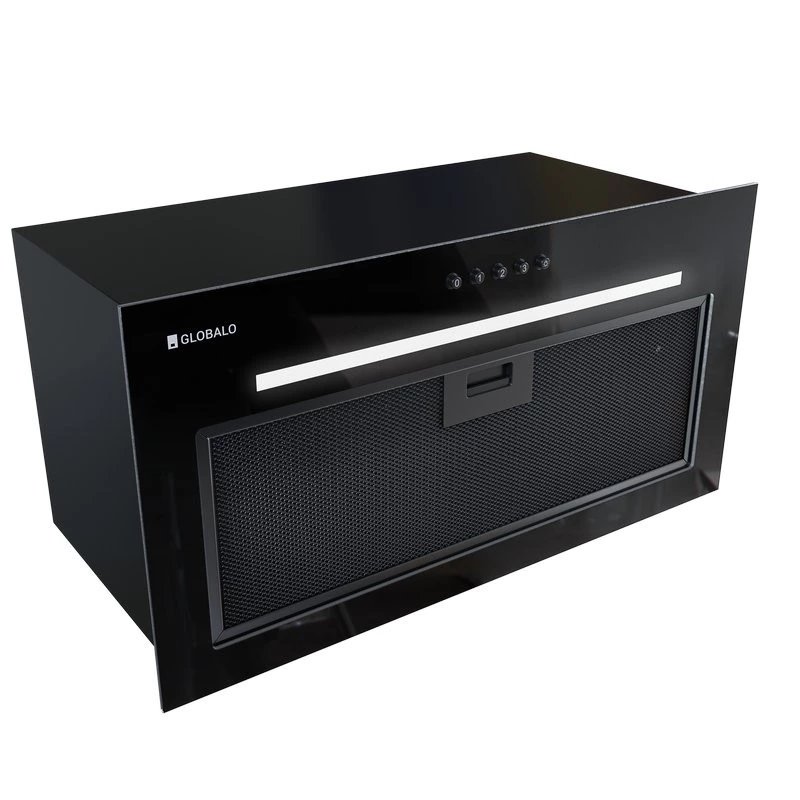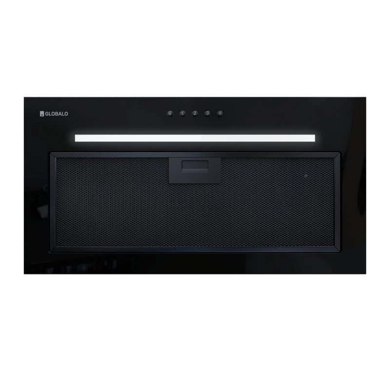 Hotte encastrable Globalo Dismo 60.1 Black, avec une puissance jusqu’à 455 m³/h et fonctionnement silencieux dès 45 dB. Façade en verre trempé, éclairage LED et 3 vitesses pour une cuisine propre et moderne.
