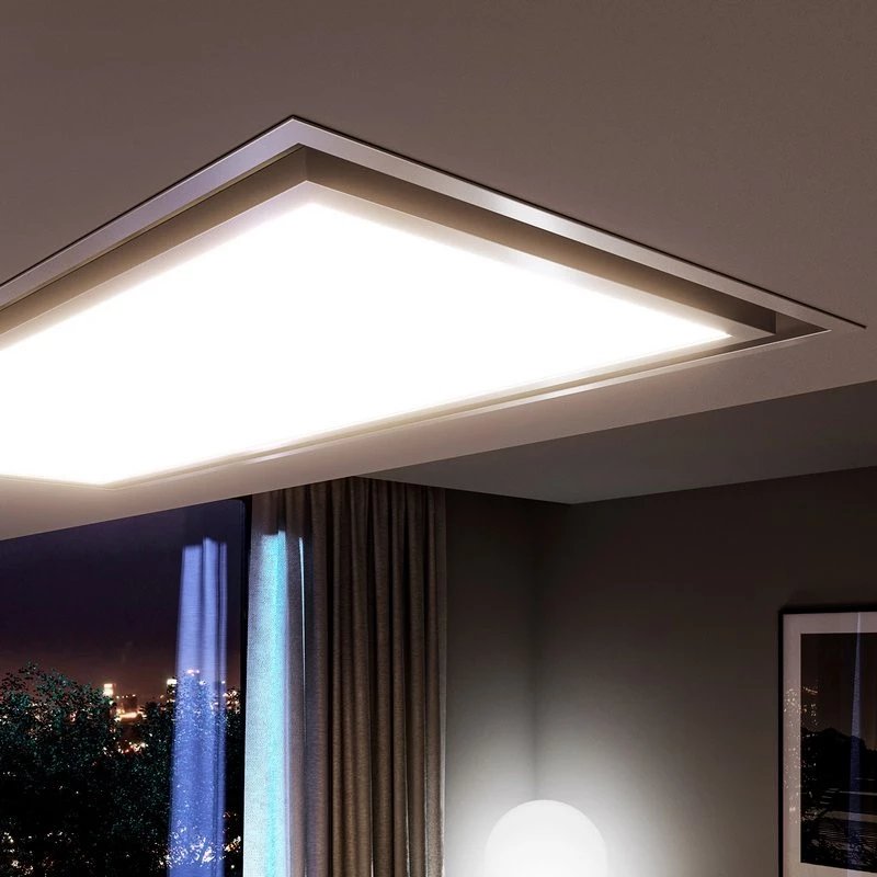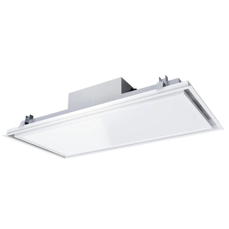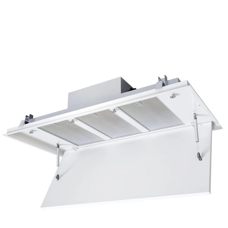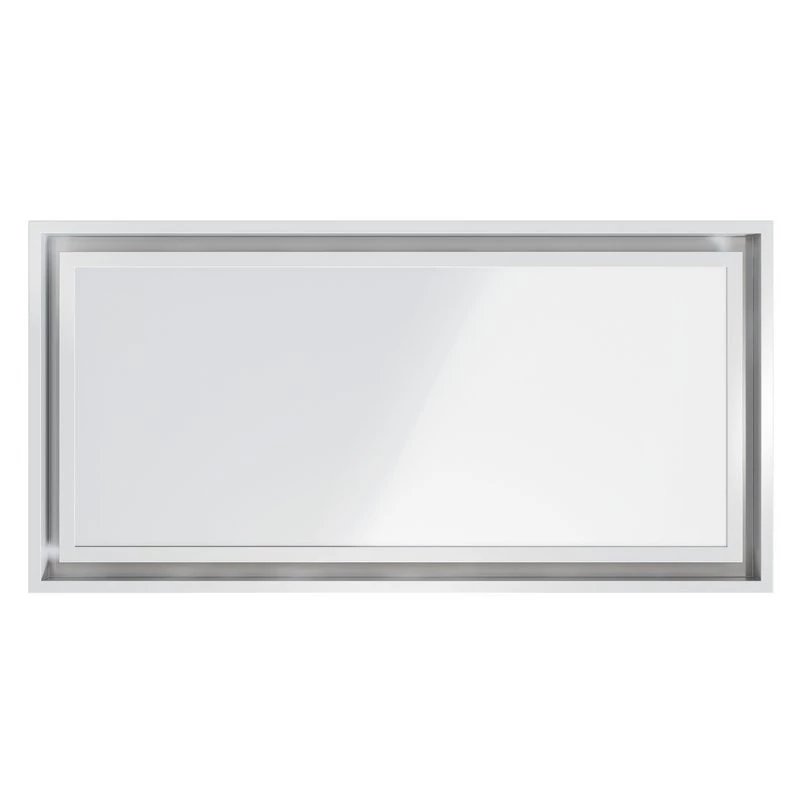 Hotte plafond Flario Light 120.1 White, avec une puissance jusqu’à 789 m³/h et classe énergétique A. Éclairage LED type plafonnier réglable (2700–6000K), contrôle à distance et design ultra discret pour cuisines haut de gamme.