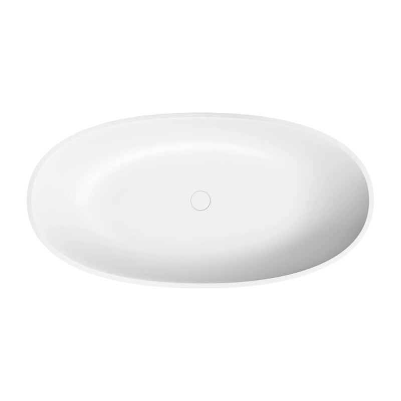 Baignoire îlot au design contemporain en matériau composite M+. Spacieuse et élégante, elle offre un confort optimal avec un volume de 390 L et se décline en finition blanc brillant ou blanc / noir brillance.