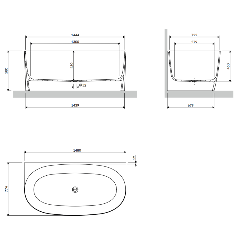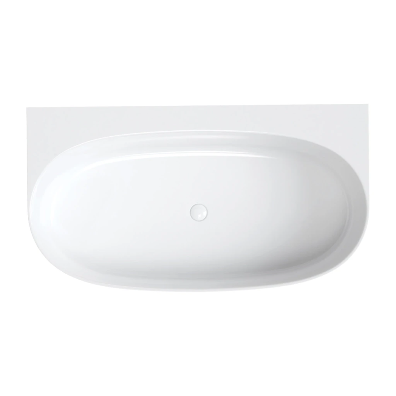 Baignoire îlot au design contemporain en matériau composite M+. Spacieuse et élégante, elle offre un confort optimal avec un volume de 390 L et se décline en finition blanc brillant ou blanc / noir brillance.