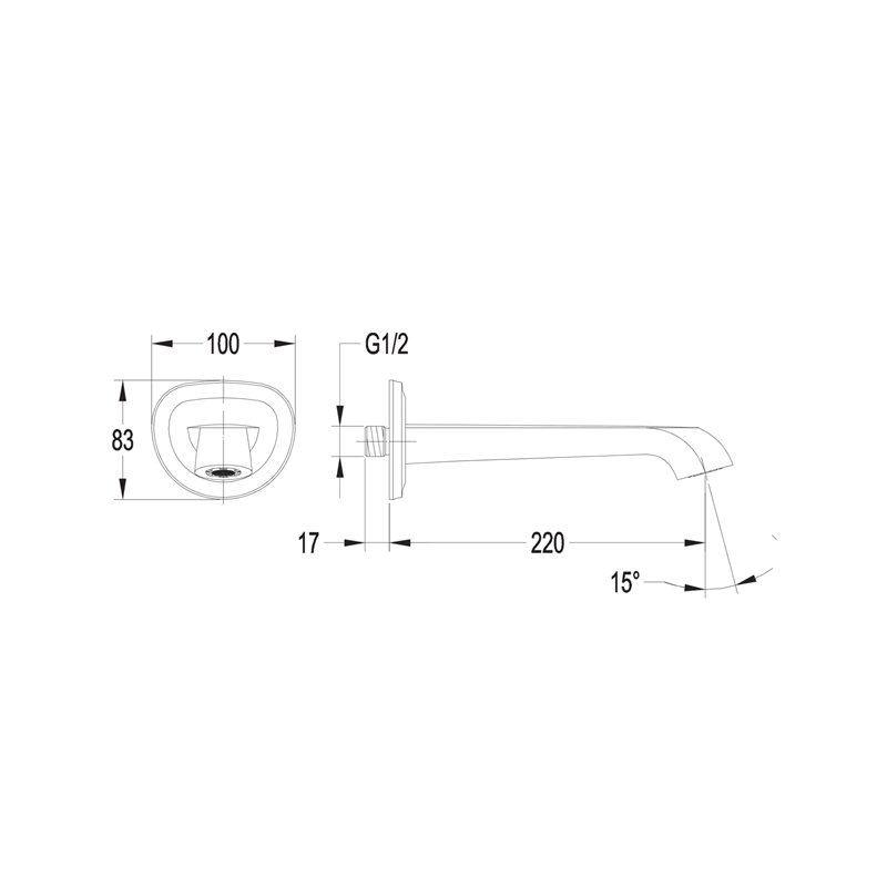 Bec de baignoire mural avec portée 22 cm, offrant un remplissage fluide et un jet doux sans éclaboussures. Installation épurée et durable.