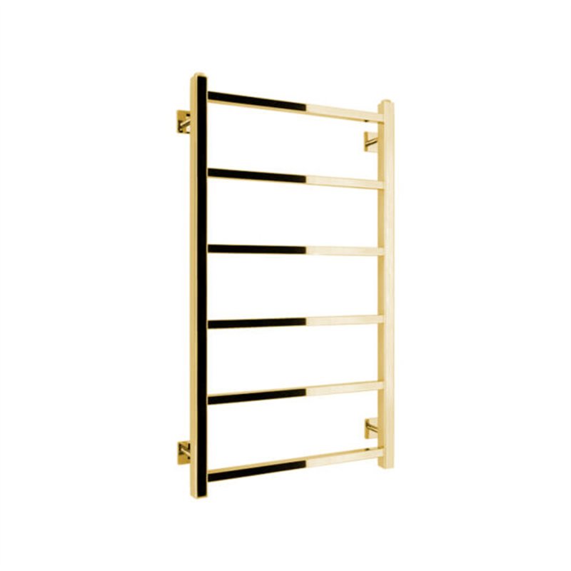 Radiateur sèche-serviettes hydraulique en tubes carrés, au design minimaliste et fonctionnel. Disponible en chrome ou or poli, avec plusieurs dimensions et puissances.