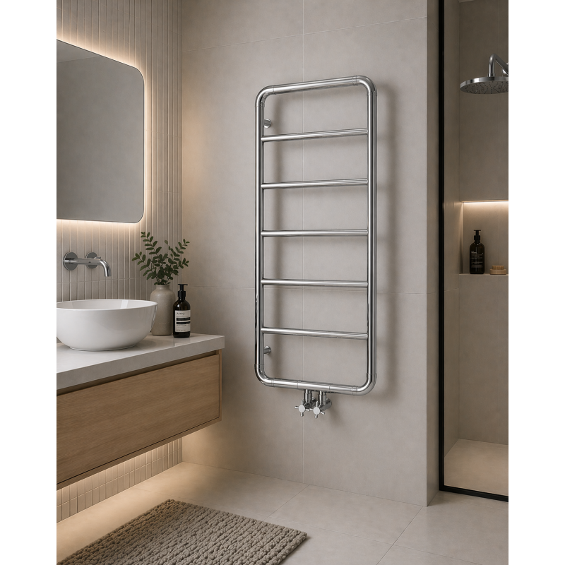 Sa conception permet une diffusion homogène de la chaleur tout en offrant une utilisation pratique en sèche-serviette. Robuste et fiable, il est conçu pour résister aux environnements humides.