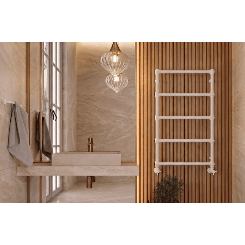 Radiateur eau chaude RETRO au design classique, idéal pour salle de bain ou pièce de vie. Sa structure à tubes ronds assure une diffusion homogène de la chaleur tout en permettant un usage en sèche-serviette.