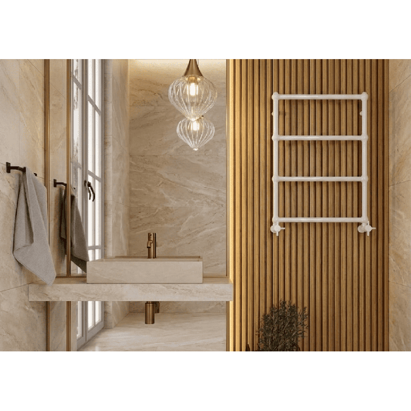 Le radiateur AWENA se distingue par son design rétro affirmé, combinant lignes verticales et finitions décoratives pour un rendu à la fois classique et contemporain. Il s’intègre parfaitement dans les salles de bain, espaces de vie ou projets de rénovation haut de gamme.