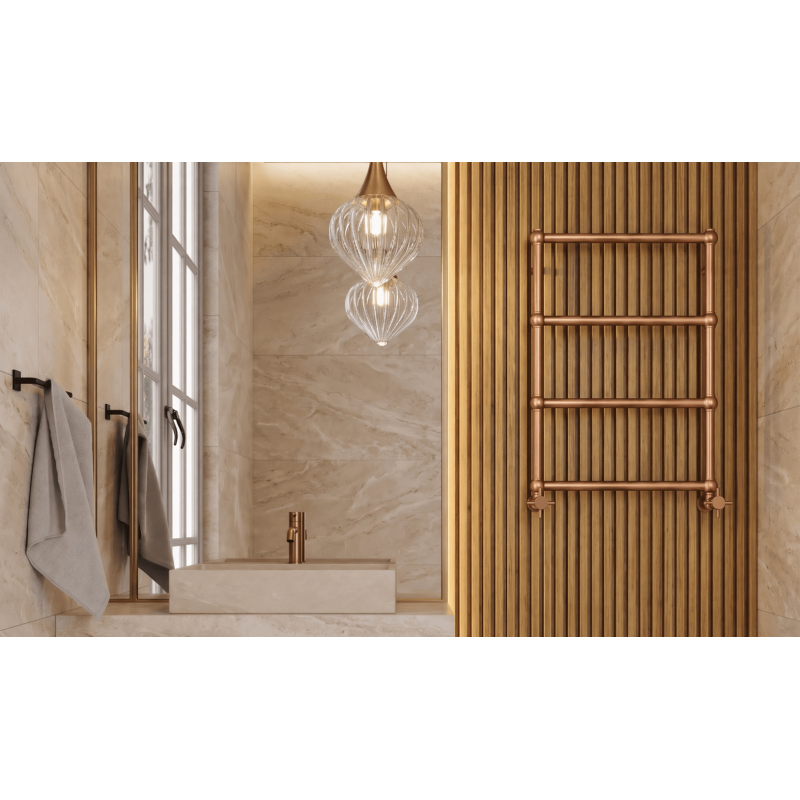 Le radiateur AWENA se distingue par son design rétro affirmé, combinant lignes verticales et finitions décoratives pour un rendu à la fois classique et contemporain. Il s’intègre parfaitement dans les salles de bain, espaces de vie ou projets de rénovation haut de gamme.