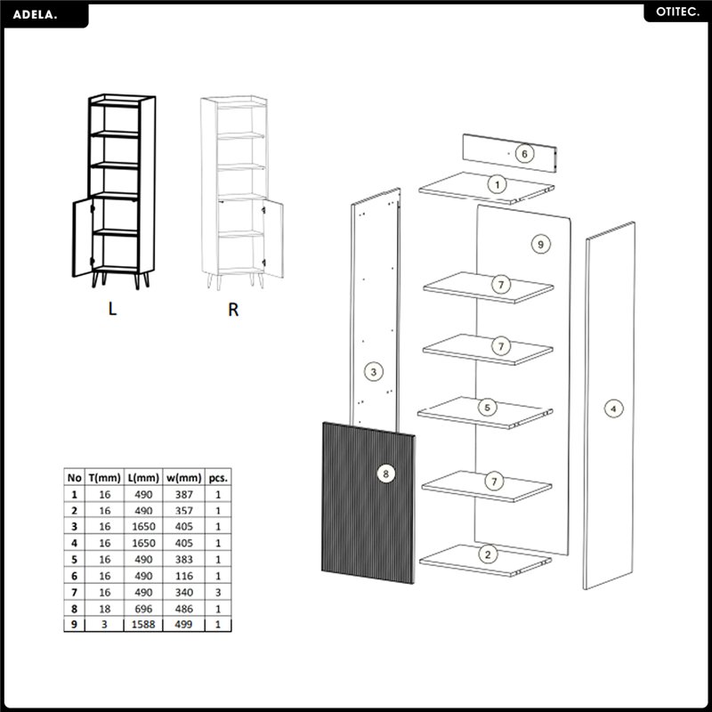 • 1x - Bibliothèque - L.52 x H.180 x P.41 - ADELA