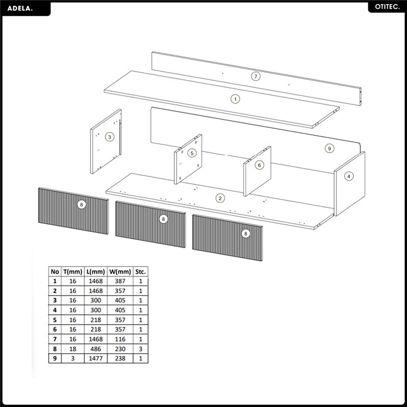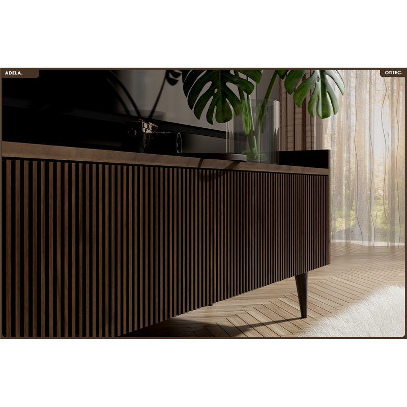 • Esthétique affirmée : Façades rainurées verticales, teinte chaleureuse du noyer, volumes équilibrés. ADELA impose une présence élégante et originale, sans alourdir l’espace.