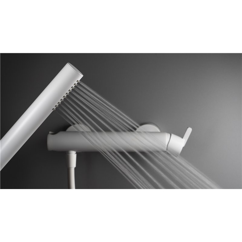 Disponible en finitions chrome, blanc, titane, acier inoxydable brossé, noir, or brossé et bronze brossé, le mitigeur de douche SILIA avec ensemble de douche se distingue par son design minimaliste et ses lignes douces et équilibrées.