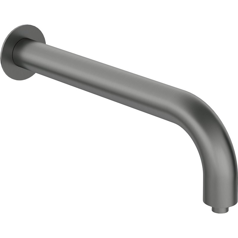 Bec de douche mural SILIA en cuivre, design arrondi minimaliste, installation encastrée, longueur 382 mm, disponible en plusieurs finitions.
