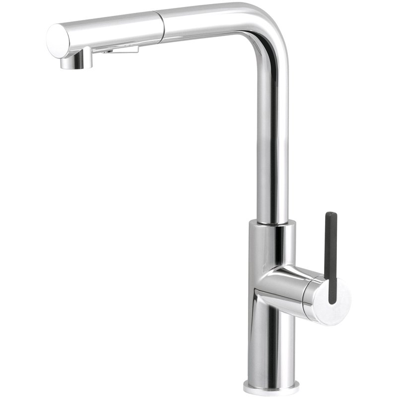 Mitigeur d’évier MOMI avec bec rectangulaire extractible et douchette 2 jets.