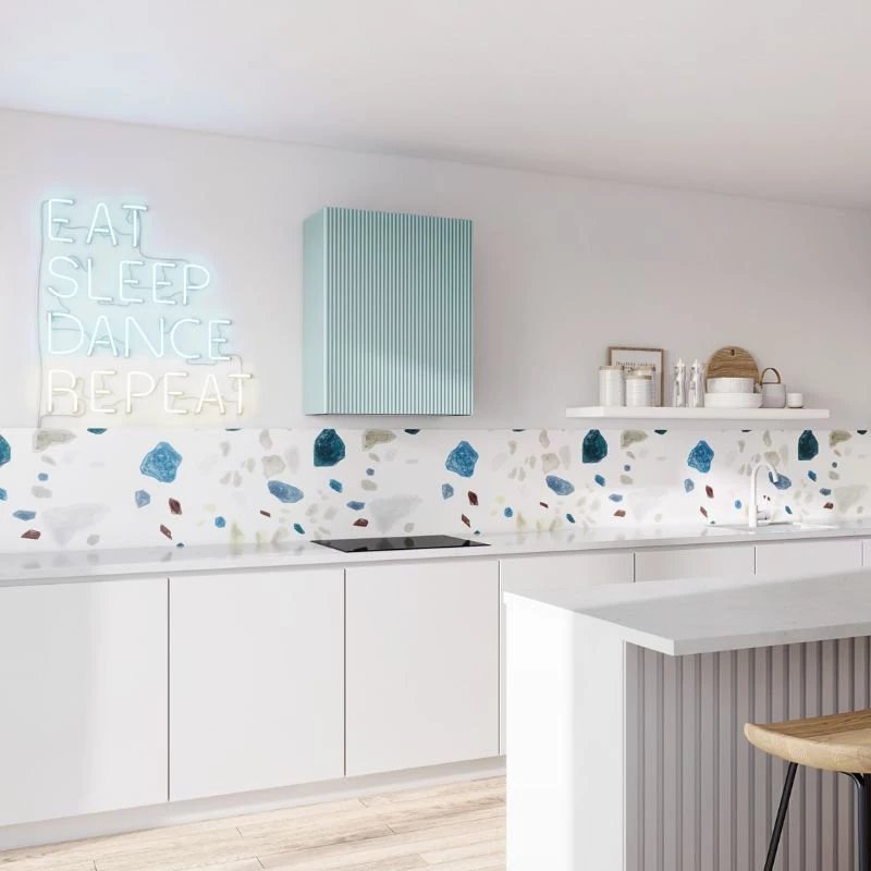 • Finitions de façade : Façade rainurée (lamelles) en coloris Menthe, Bleu Océan ou Rose Velours.