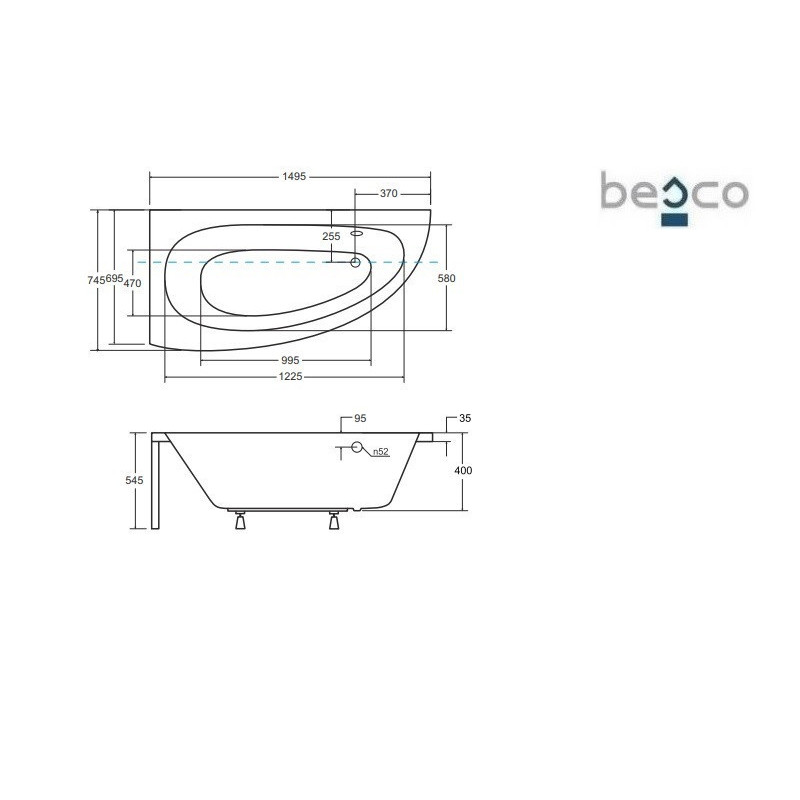 La baignoire MILENA est proposée en dimension 150 cm et existe en version angle gauche ou angle droit, afin de sadapter à différentes configurations de salle de bain.