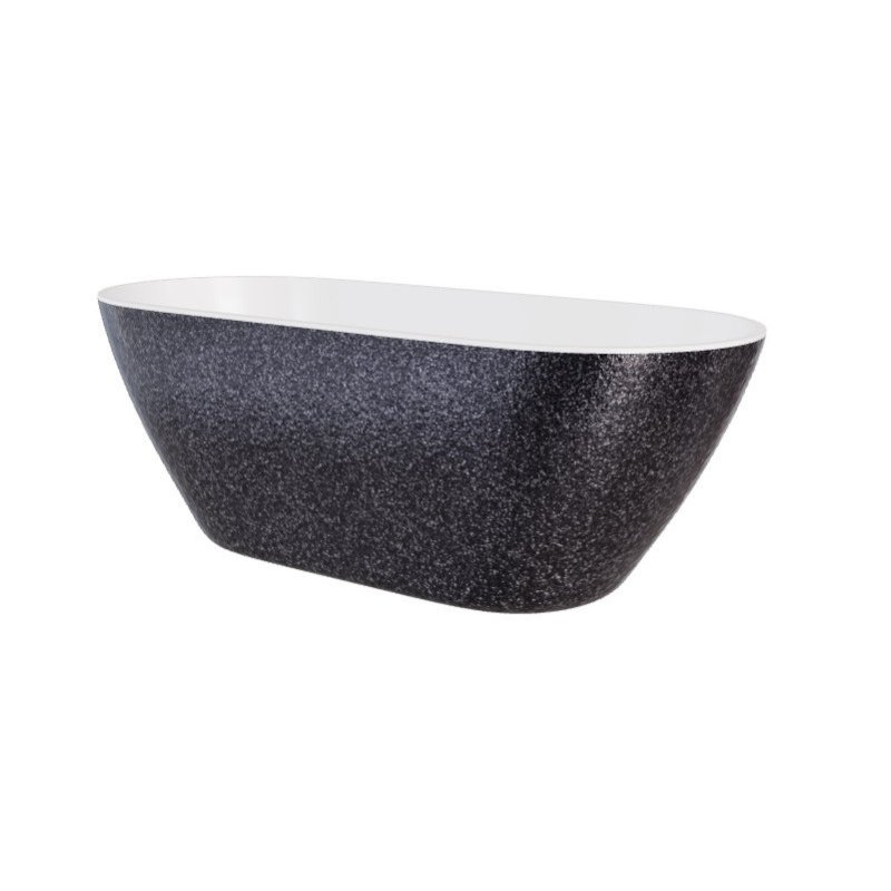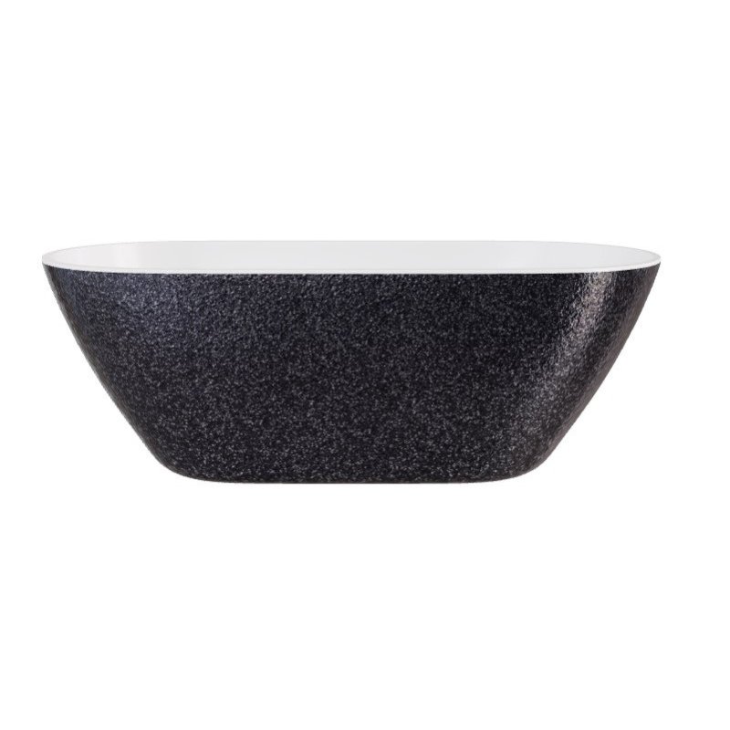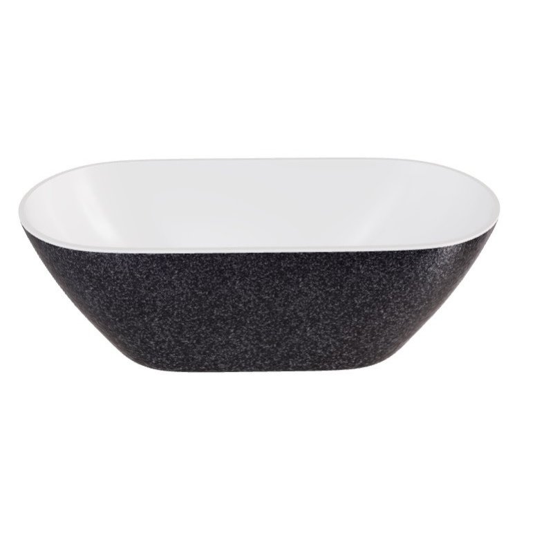 Baignoire îlot au design contemporain en matériau composite M+. Spacieuse et élégante, elle offre un confort optimal avec un volume de 390 L et se décline en finition blanc brillant ou blanc / noir brillance.