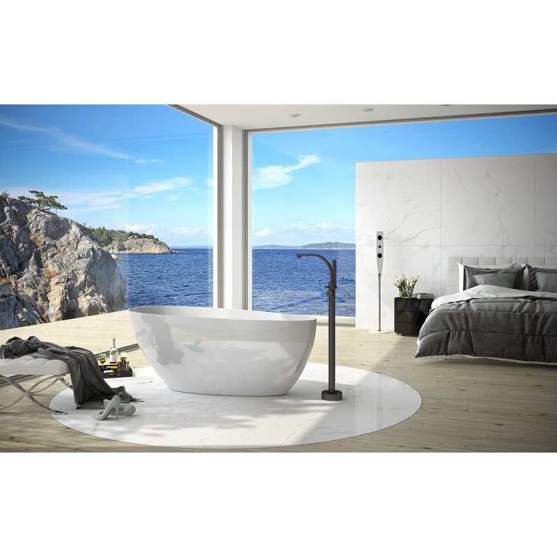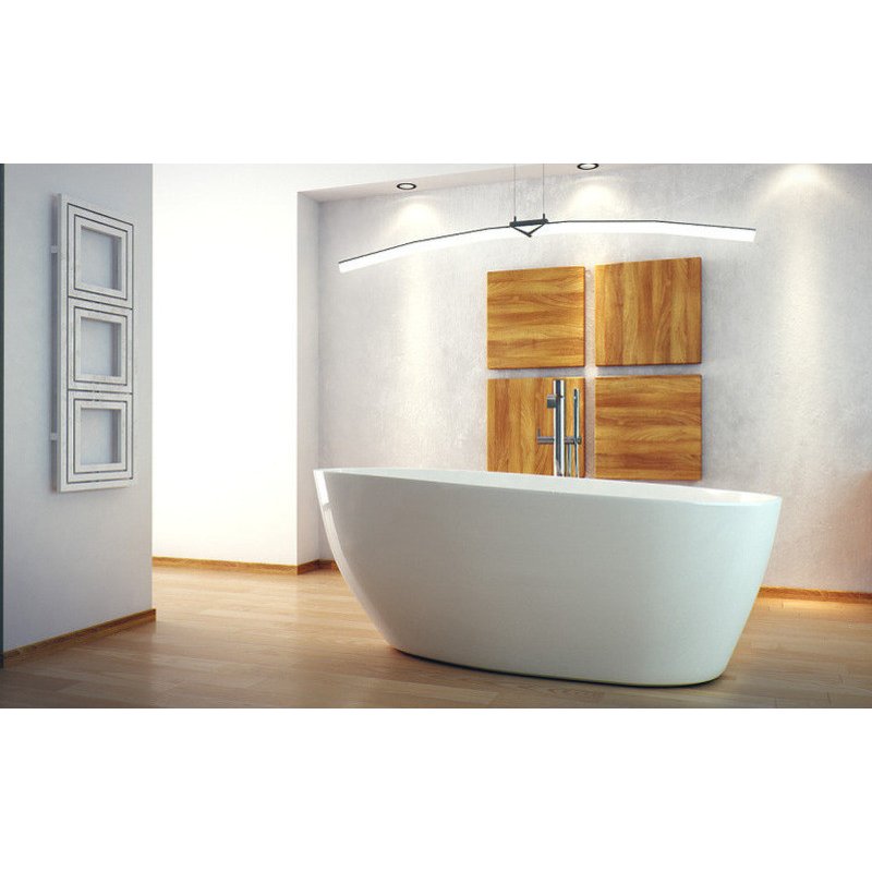 Baignoire îlot au design contemporain en matériau composite M+. Spacieuse et élégante, elle offre un confort optimal avec un volume de 390 L et se décline en finition blanc brillant ou blanc / noir brillance.