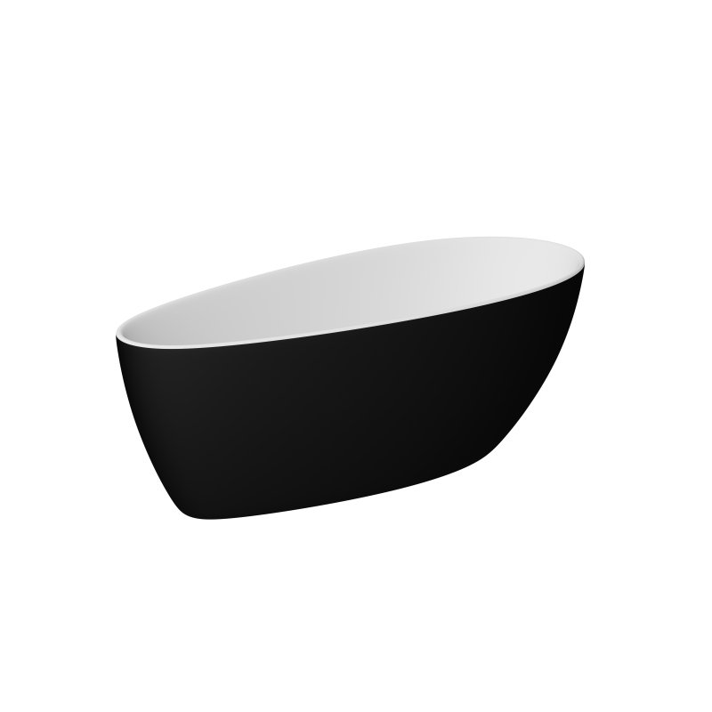Baignoire îlot au design contemporain en matériau composite M+. Spacieuse et élégante, elle offre un confort optimal avec un volume de 390 L et se décline en finition blanc brillant ou blanc / noir brillance.