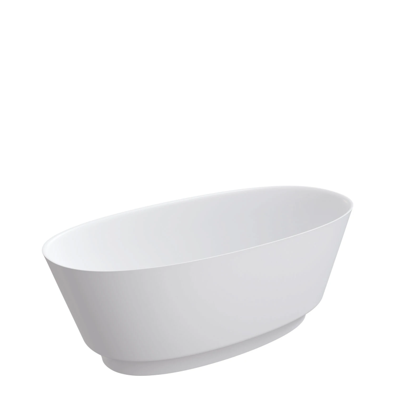 Baignoire îlot au design contemporain en matériau composite M+. Spacieuse et élégante, elle offre un confort optimal avec un volume de 390 L et se décline en finition blanc brillant ou blanc / noir brillance.