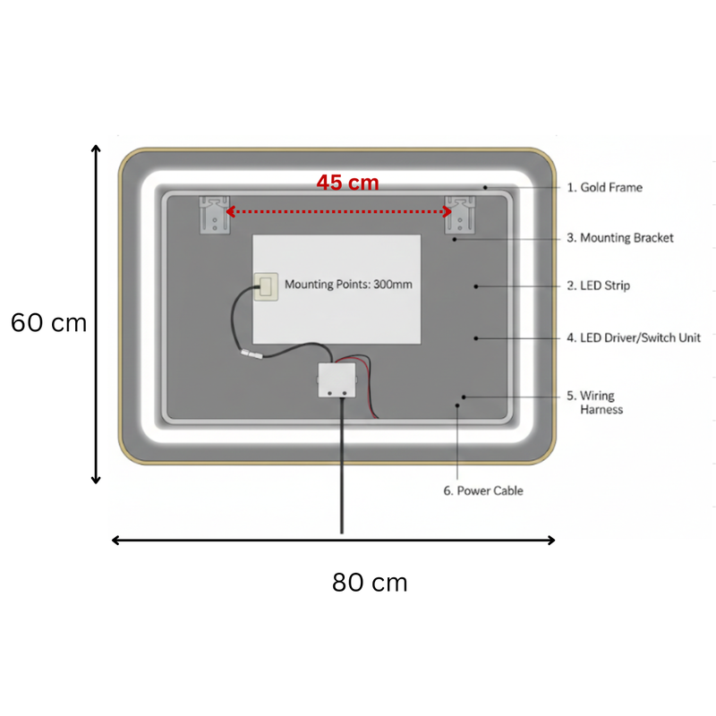 Grâce à son indice de protection IP44, ce miroir est protégé contre l’humidité et les projections d’eau, assurant une utilisation durable et sécurisée dans l’environnement de la salle de bain. Sa conception conforme aux normes européennes en fait un choix fiable pour un équipement à la fois esthétique et performant.