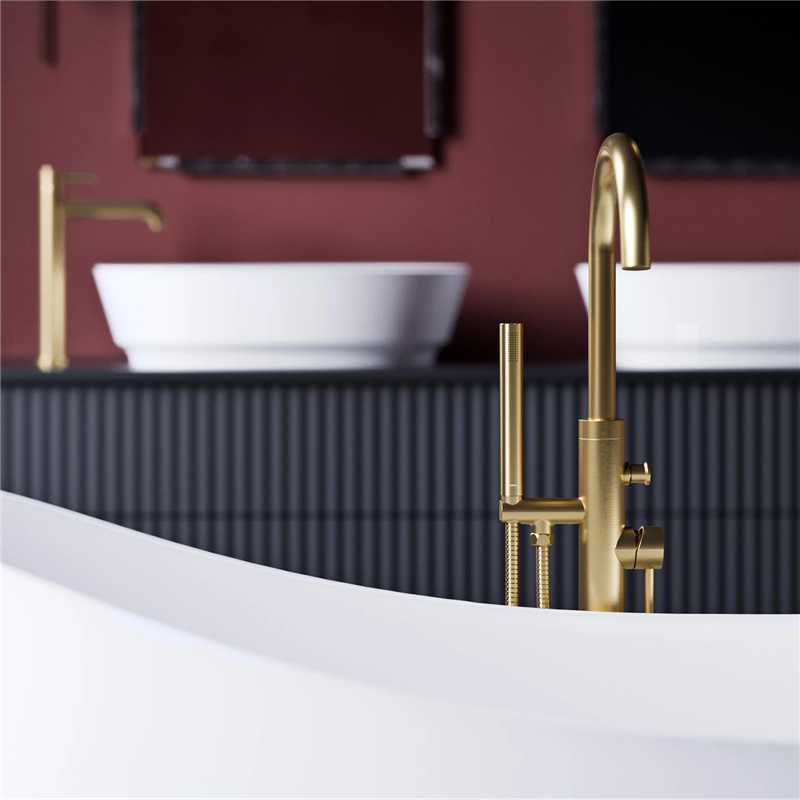 Disponible en finitions blanc mat, chrome poli, nickel brossé, graphite brossé, cuivre brossé, cuivre poli, laiton brossé, or poli, or brossé, noir semi-mat ainsi qu’en version or et noir selon les modèles, le mitigeur de baignoire sur pied Collection Y est conçu pour accompagner les baignoires îlot avec un rendu structuré et fonctionnel.
