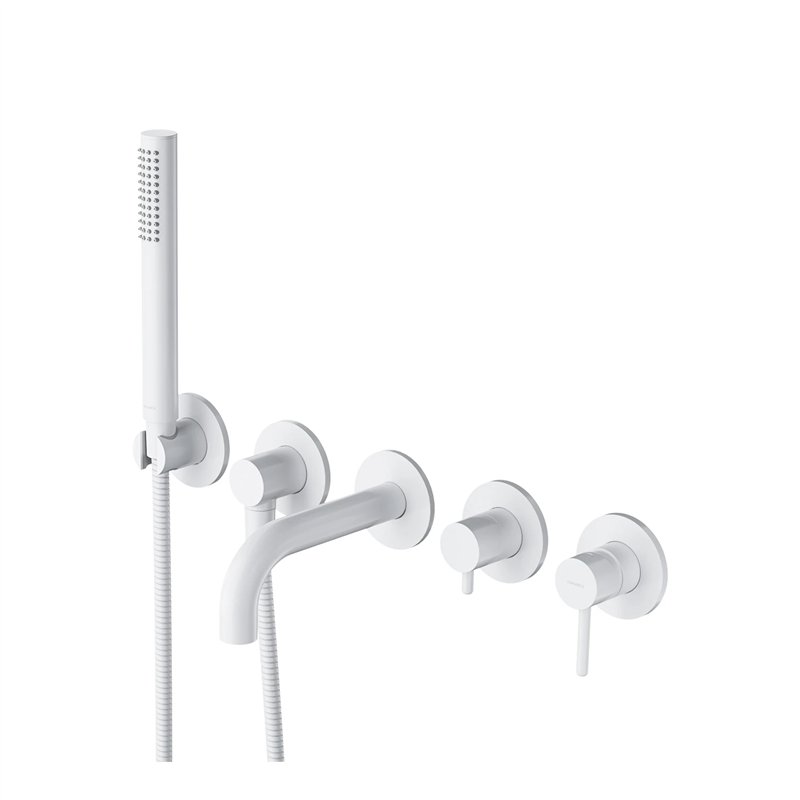 Mitigeur de baignoire à encastrer 5 trous Collection Y avec douchette 1 fonction, flexible 125 cm, mousseur AIR WATER et installation sur plage, disponible en plusieurs finitions.
