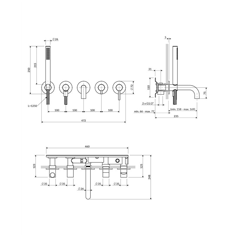 • Type : Mitigeur de baignoire à encastrer 5 trous