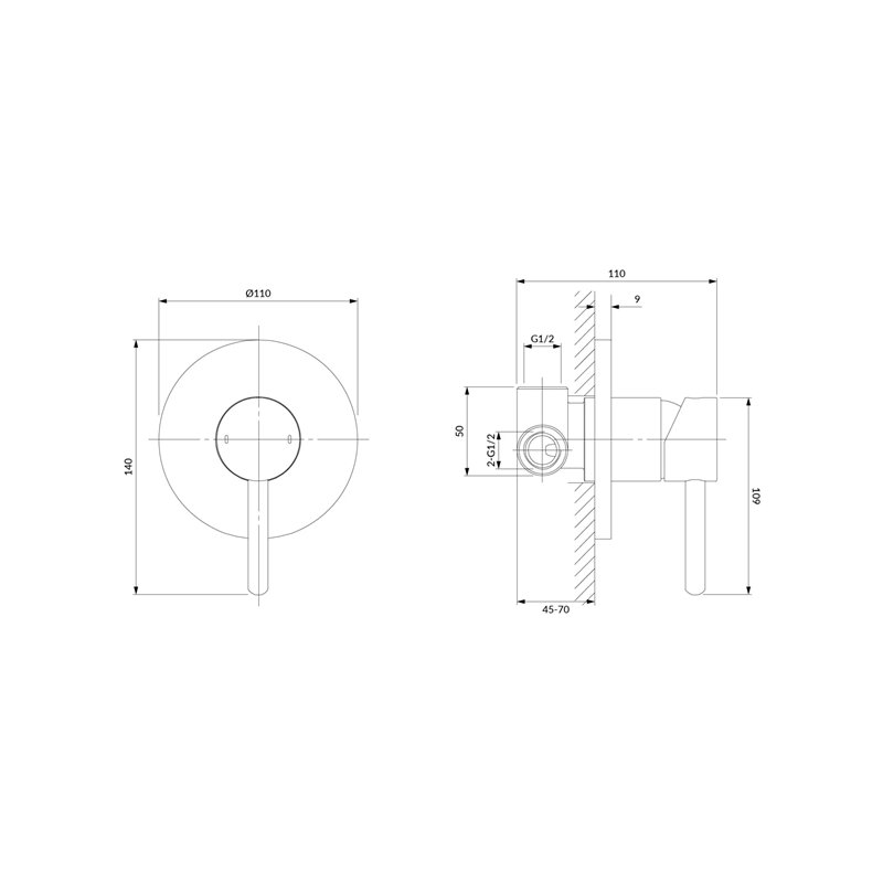 Mitigeur de douche à encastrer Collection Y avec rosette Ø11 cm, élément encastré inclus et raccordement standard 1/2", disponible en plusieurs finitions.