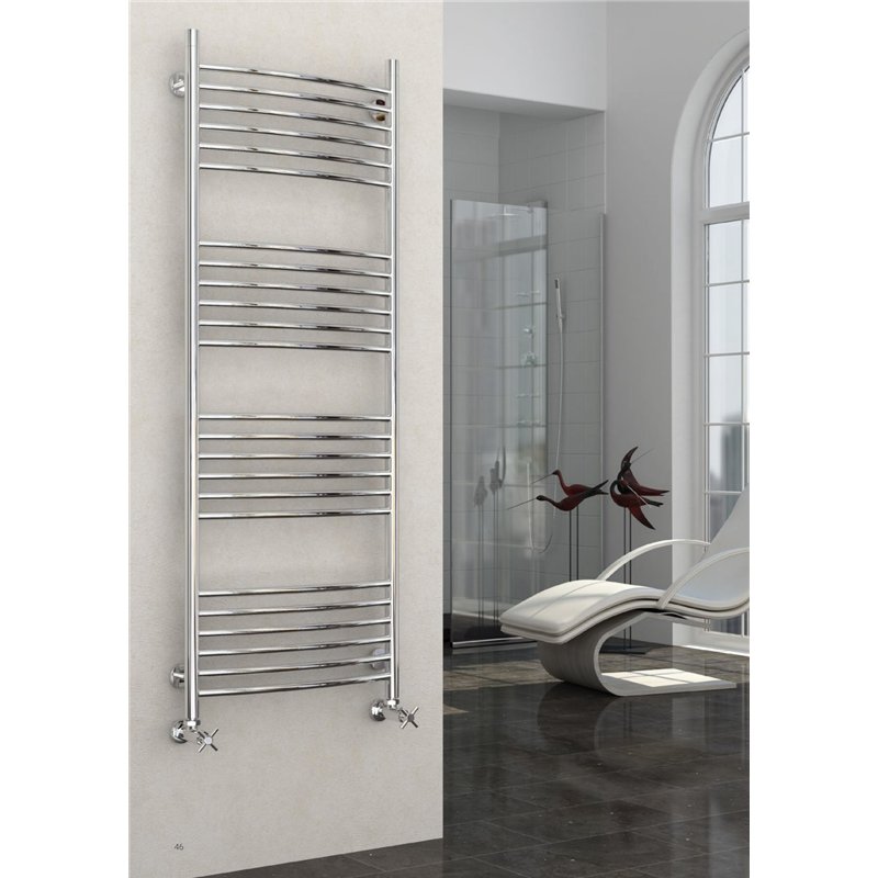 Radiateur sèche-serviettes hydraulique classique à tubes légèrement incurvés, offrant une élégance discrète et une performance fiable.