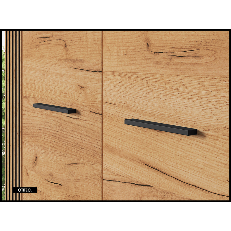 L'armoire URY est un meuble élégant et robuste, parfait pour tout espace moderne. Sa finition Oak apporte chaleur et raffinement, tandis que le Noir des détails et de la base ajoute une touche contemporaine.