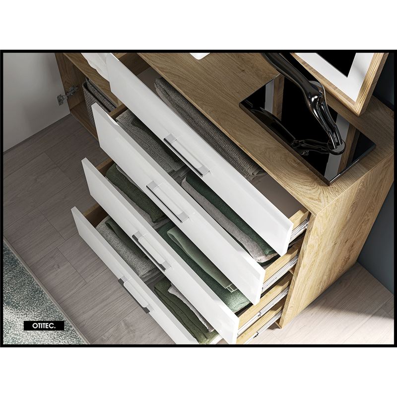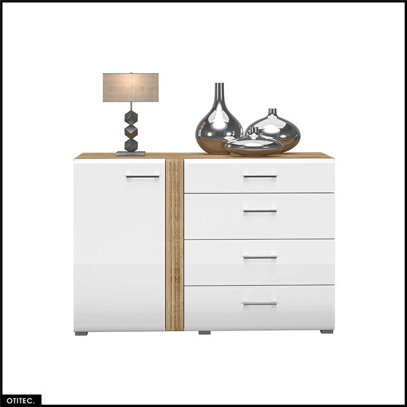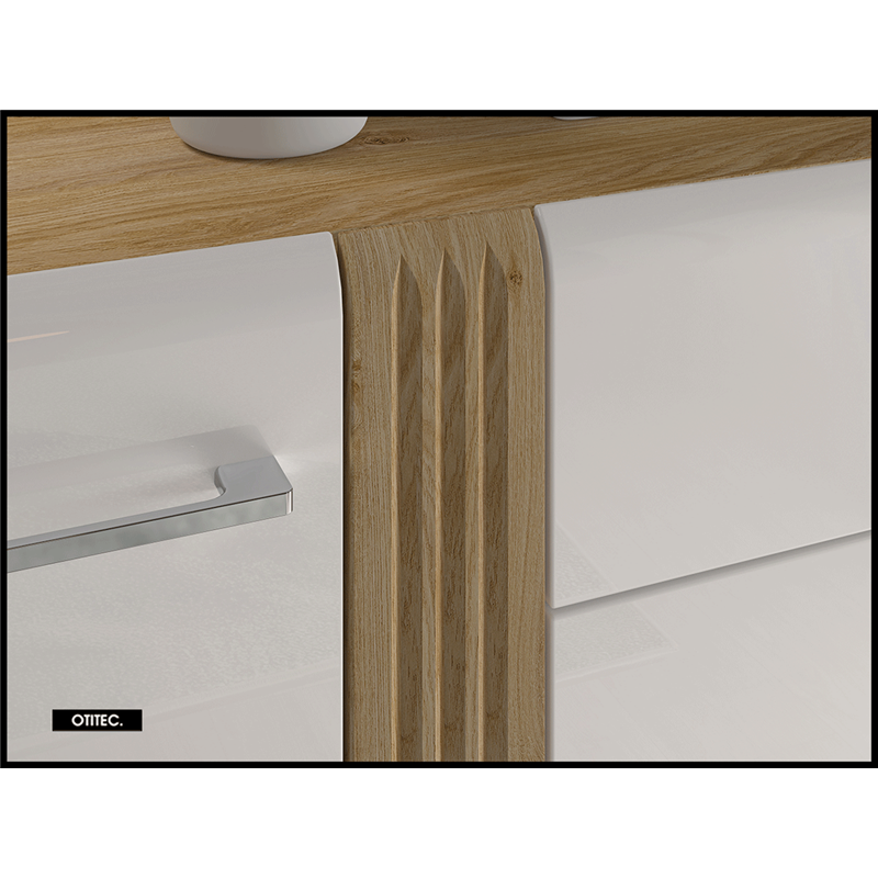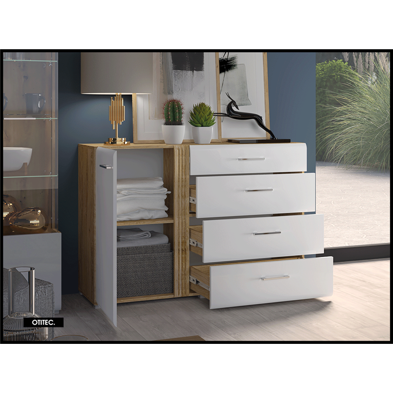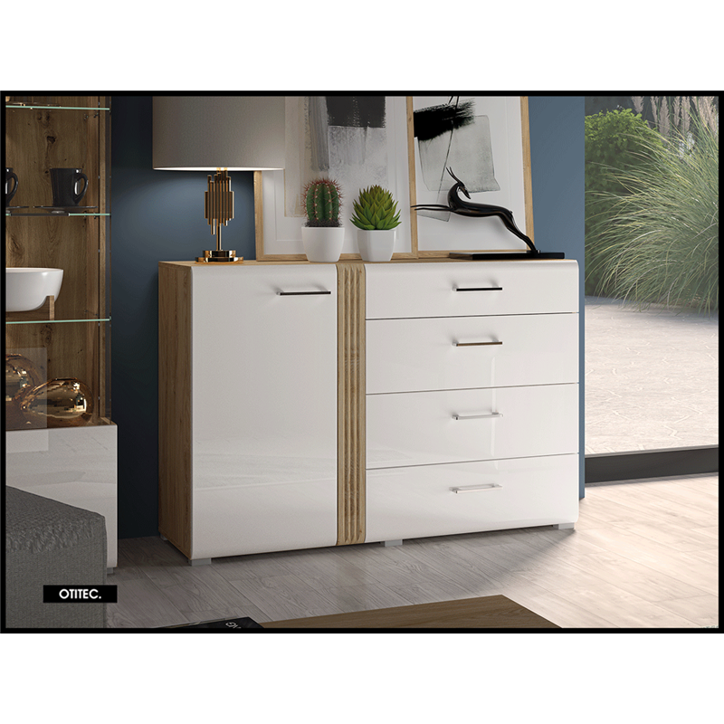 • x1 - Commode de 134 cm - Oak + Blanc brillant