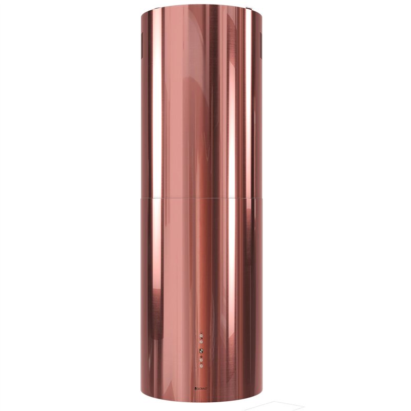 Hotte aspirante Cylindro Isola 39.7 avec une capacité de 742 m³/h et un fonctionnement ultra-silencieux à 46 dB. Disponible en plusieurs couleurs : Noir, Noir Ombre, Bleu, Doré, Vert, Cuivre, Rose, Blanc, Blanc Doré. Commandes Soft-Touch et éclairage LED réglable.